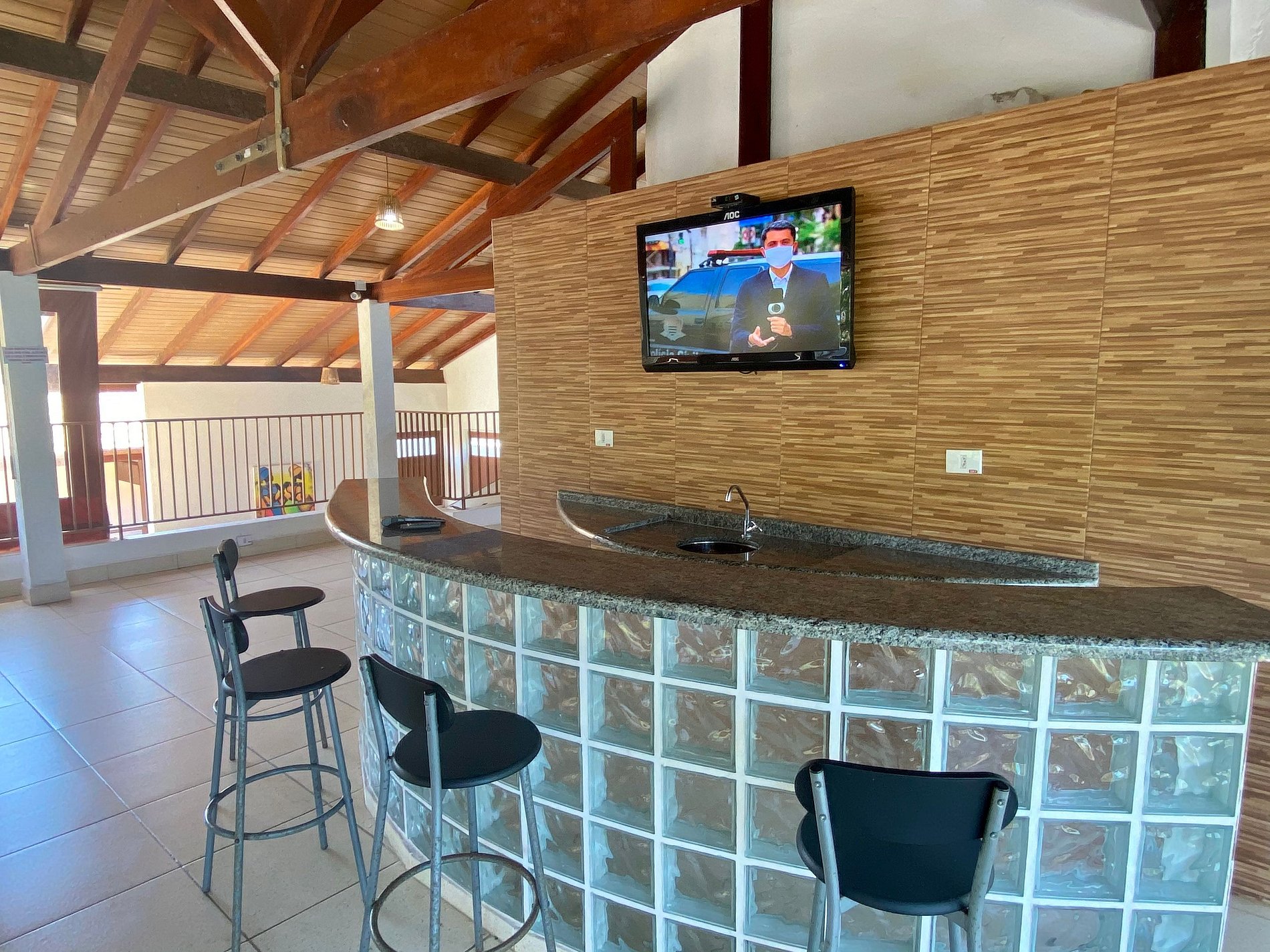 No último andar tem um amplo salão de jogos com tv, pebolim, bilhar e mesa para cartas. A piscina é uma delícia.