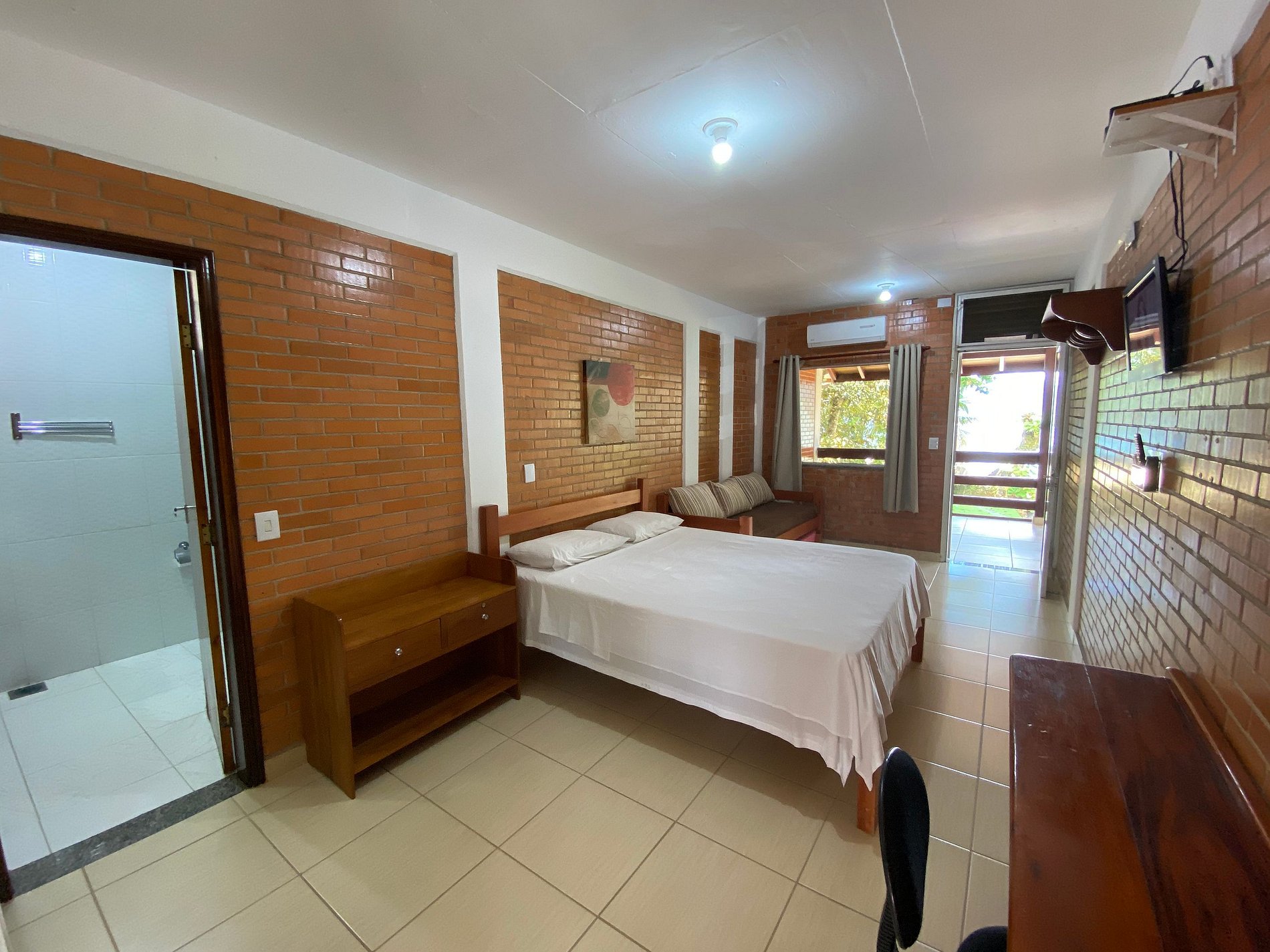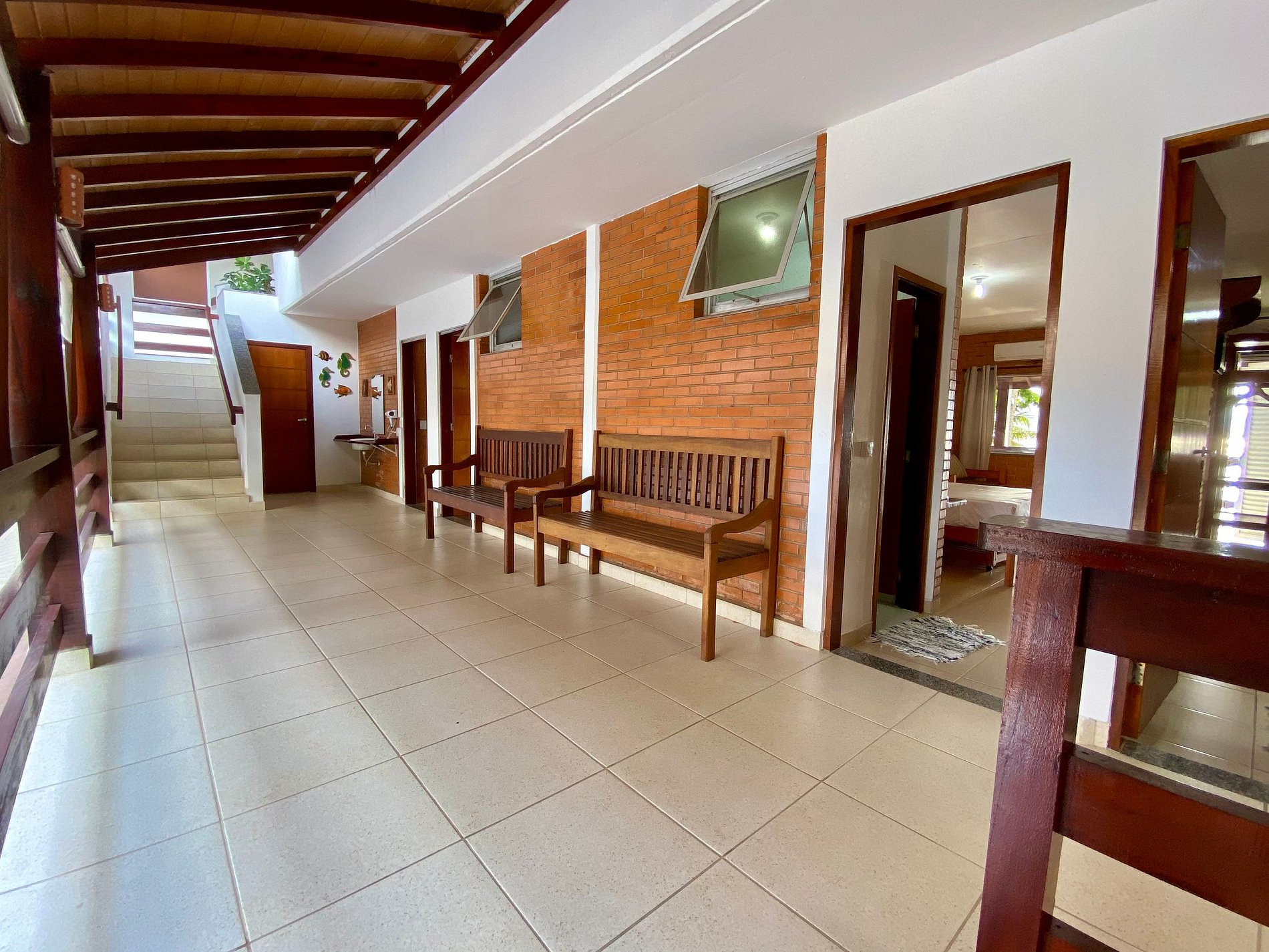 A casa dispõe de quatro amplas suítes, todas com vista para o mar. Cada suíte está equipada com ar condicionado split, TV LCD c/ SKY e banheiro privativo, garantindo conforto e privacidade para todos os hóspedes.