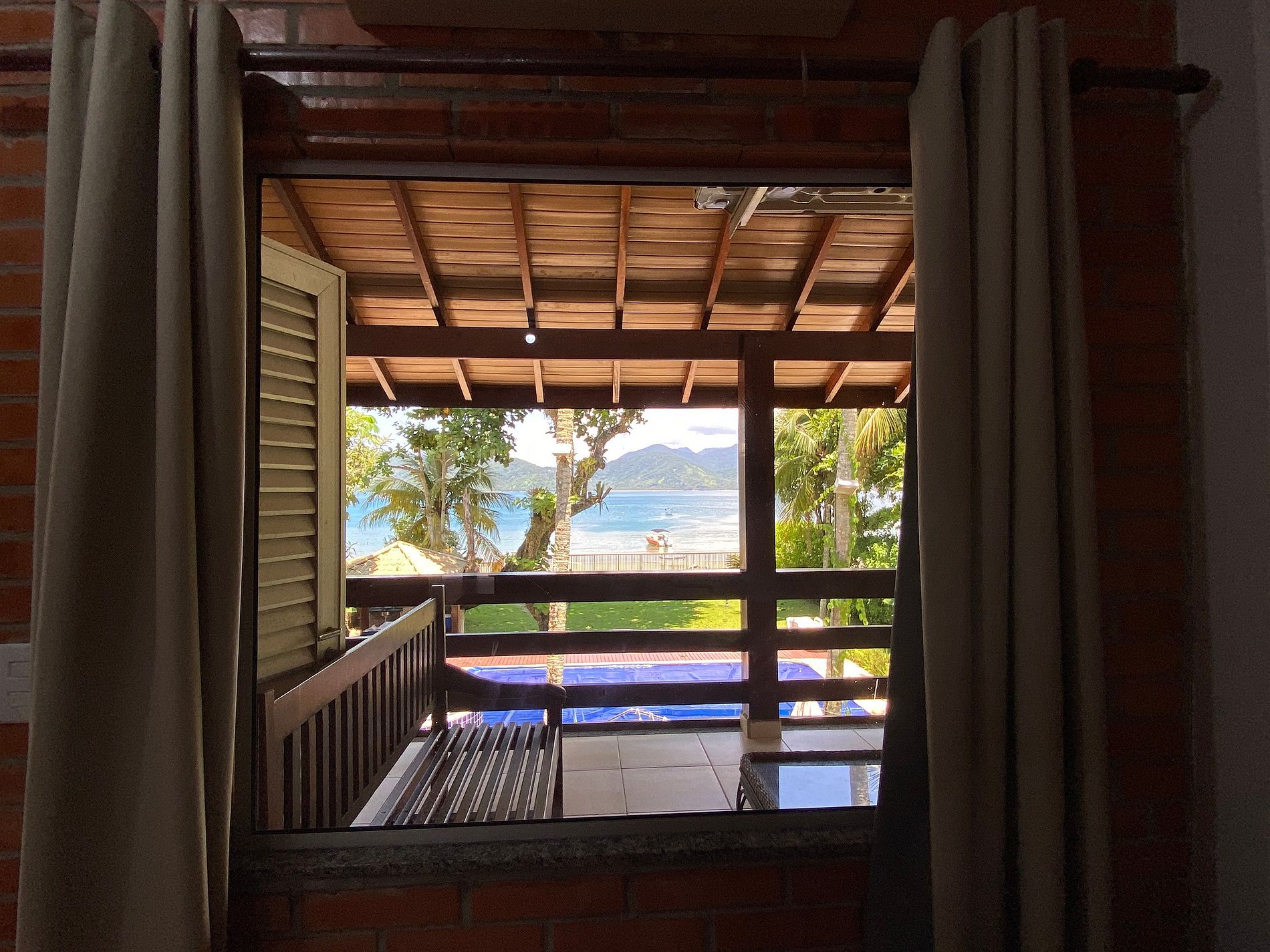 A Praia é ótima para crianças, a área externa tem árvores Linda's, o Gramado é bem cuidado, a maré subiu a noite e o mar deu um espetáculo a parte. Não fotografamos o pôr do sol, que SE poe exatamente no topo da montanha em frente a casa. Mas voltaremos, com certeza.