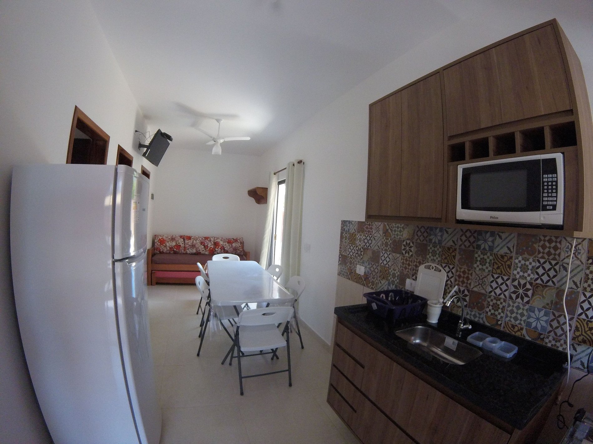 Cozinha Completa e churrasqueira privativa: Nossa cozinha está equipada com todos os utensílios e eletrodomésticos que você precisa para preparar refeições deliciosas ou se preferir fazer aquele churrasco após um dia de praia.
