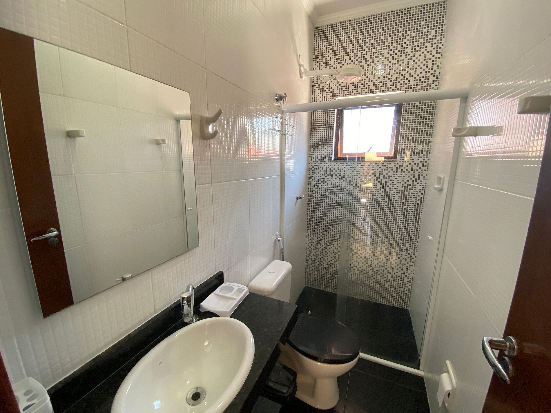 Apto superior 2 dorms sendo 1 suíte mais 1 banheiro, cozinha completa com todos os utensílios mais micro-ondas e liquidificador, ar condicionado split quente e frio (dormitórios), ventilador de teto, TV 32, wi-fi, área externa c/ churrasqueira privativa, mesa c/ 4 cadeiras, rede e 1 vaga de estacionamento fechada