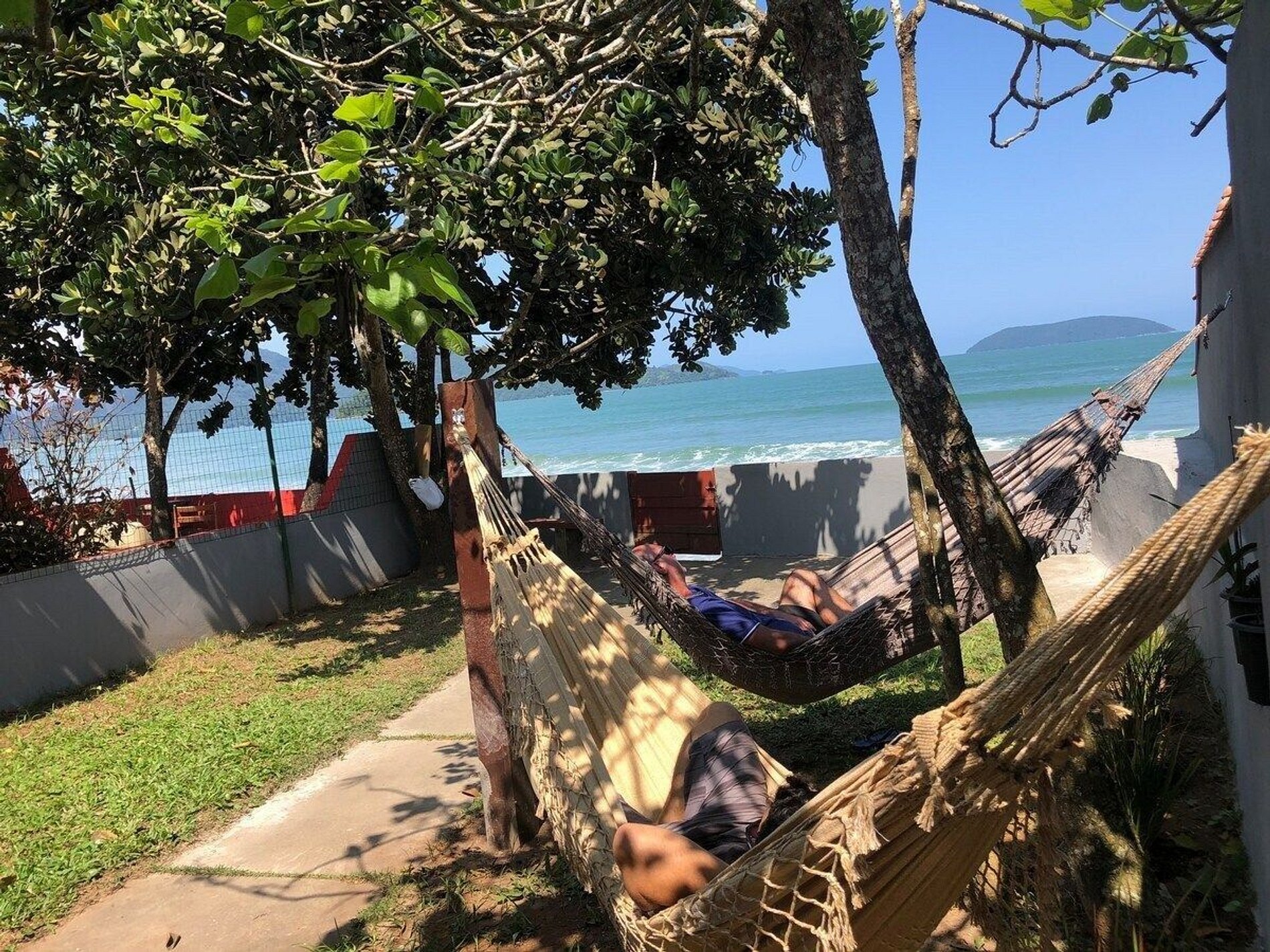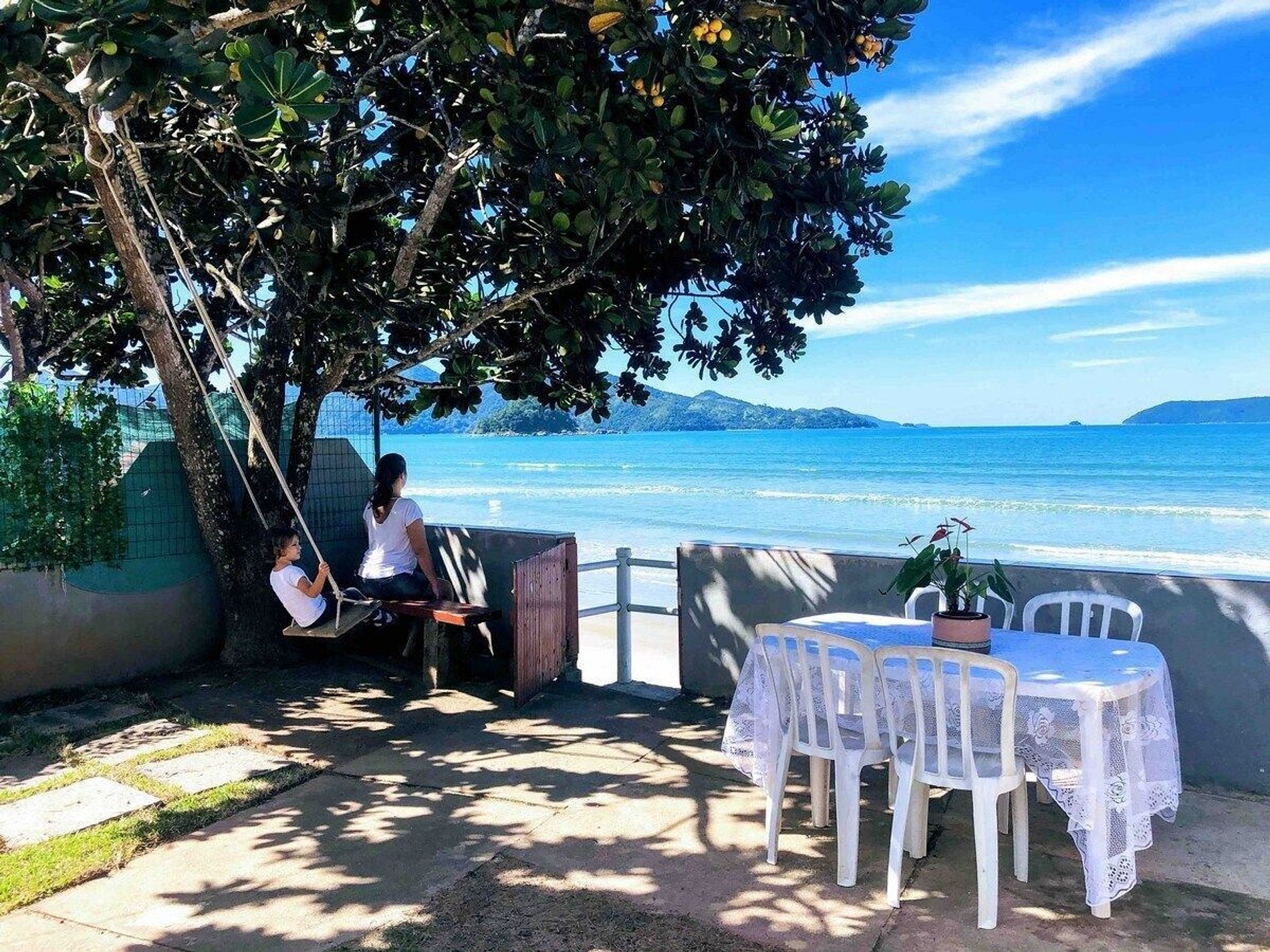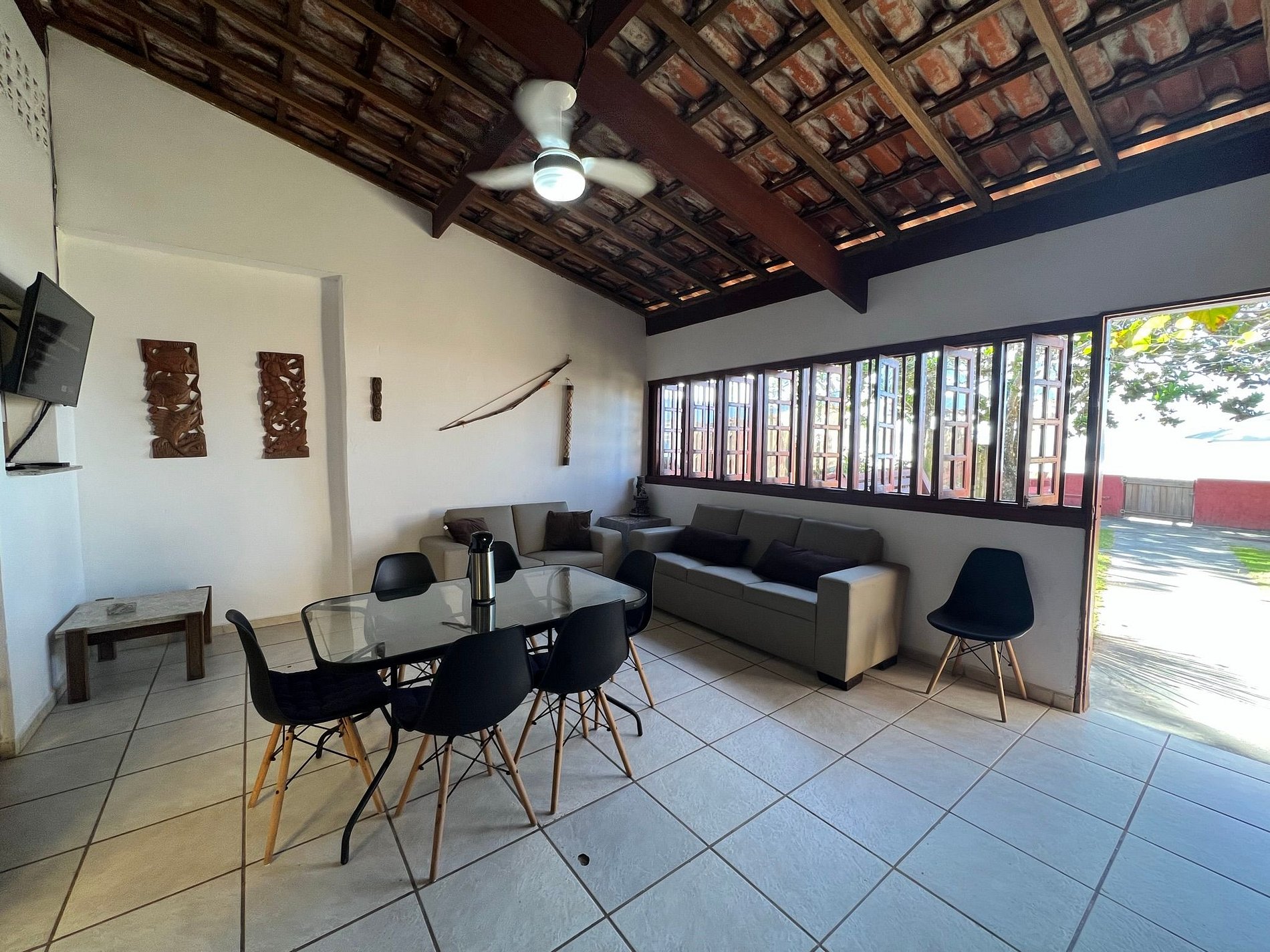 Nossa casa pé na areia na praia do Sapê se destaca pela sua localização privilegiada em um condomínio com portaria e segurança, oferecendo acesso direto à praia. Com cinco quartos, incluindo duas suítes, todos equipados com ventilador de teto, nossa ampla área gourmet de frente para o mar proporciona uma vista deslumbrante. O jardim, com mesa para quatro pessoas, balanço, redes e uma árvore que oferece sombra natural, completa a experiência relaxante e acolhedora.